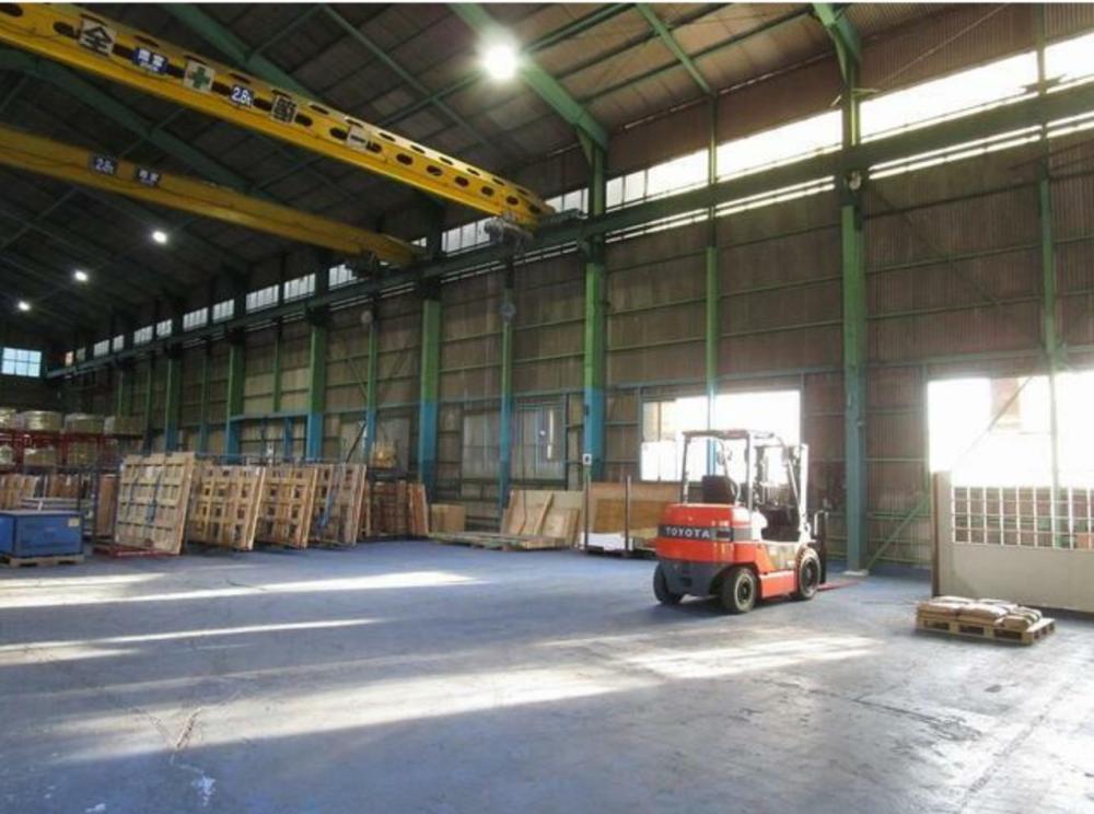 八千代市大和田新田の貸倉庫物件です!@ホイスト式天井クレーン2基(2.5t×2)残置物 A天井:高いところで12m。 B入口:H3.8m・W5.0m(電動シャッター) Cトイレ・荷物積込場所共有(管理費負担有) Dフォークリフト貸出可。 E駐車場有(普通車2台可) F使用面積の中に共有通路部分含む(約90u)