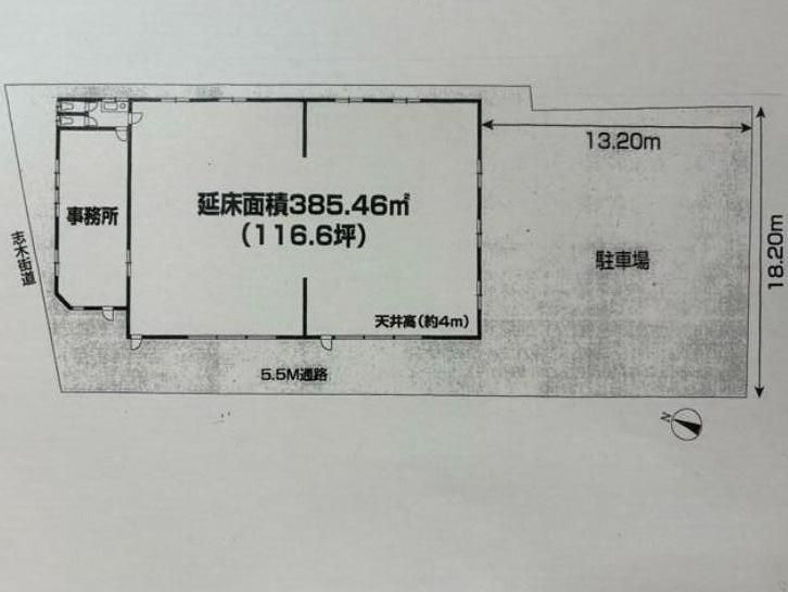 | 構造 | 軽量鉄骨造 | 用途 / 面積 | 倉庫 / 385.46m2(116.6坪) | ||||