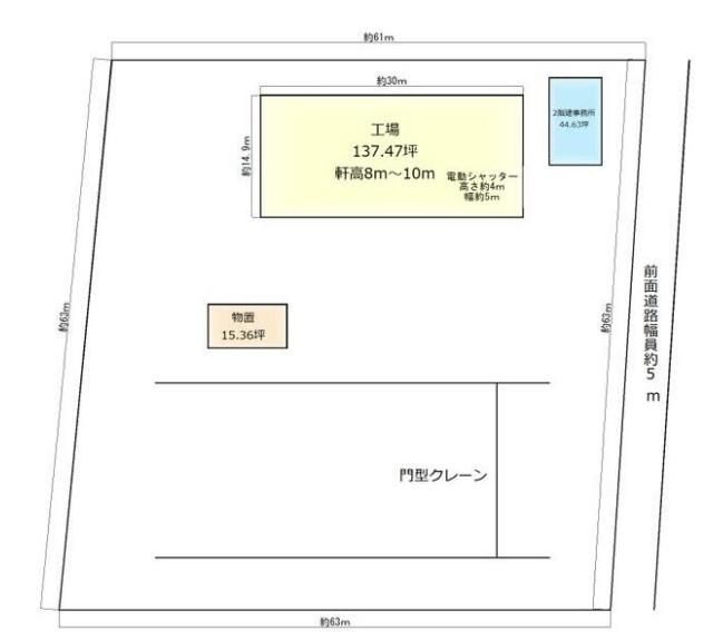 | 構造 | S造(鉄骨造) | 用途 / 面積 | 倉庫 / 454.3m2(137.42坪) | ||||