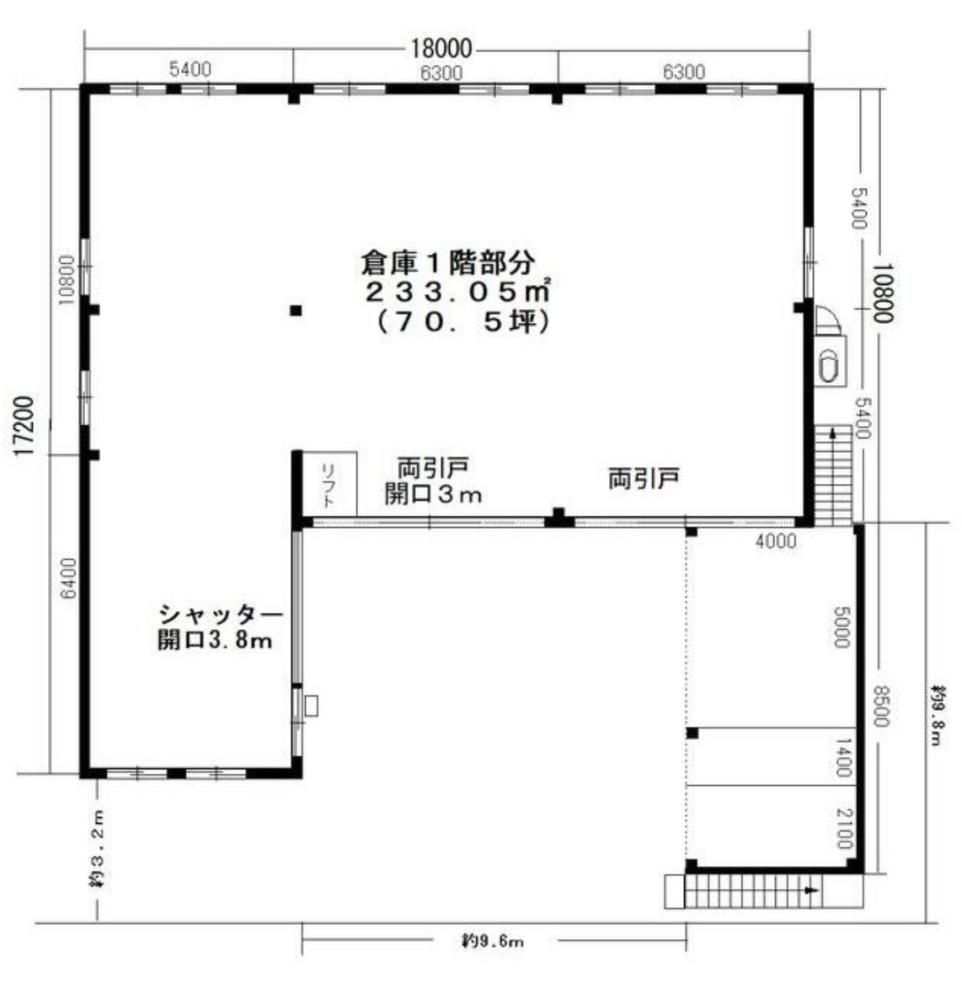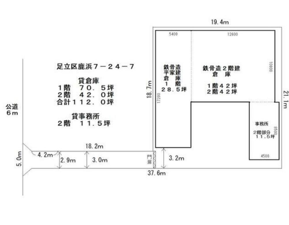 | 備 考 | 1階倉庫部分70.5坪。2階倉庫部分42坪、事務所部分11.5坪 | ||