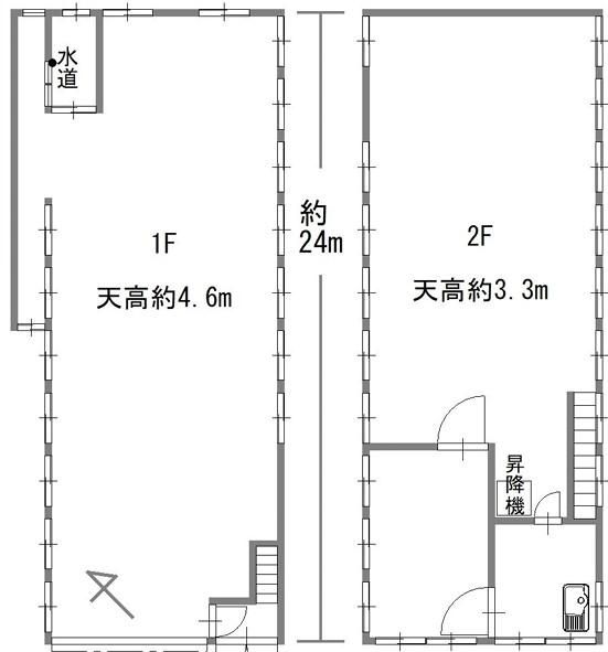 | 天井高 | 1階 天高4.6m 2階 天高3.3m | エレベーター | |