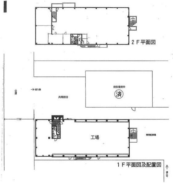 | 備 考 | 1F 466.32u 2F466.32u 計932.64u(282.12坪) 電気・水道・トイレ 天井走行クレーン(2.8t)2基 |