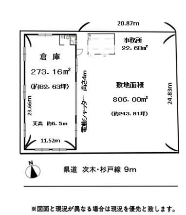 | 構造 | S造(鉄骨造) | 用途 / 面積 | 倉庫 / 273.16m2(82.63坪) | ||||